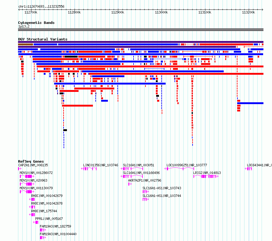 Variant DetailsVariant: dgv312n223| Internal ID | 22803280 | | Landmark | | | Location Information | | | Cytoband | 1p13.2 | | Allele length | | Assembly | Allele length | | hg38 | 561864 | | hg19 | 561864 |