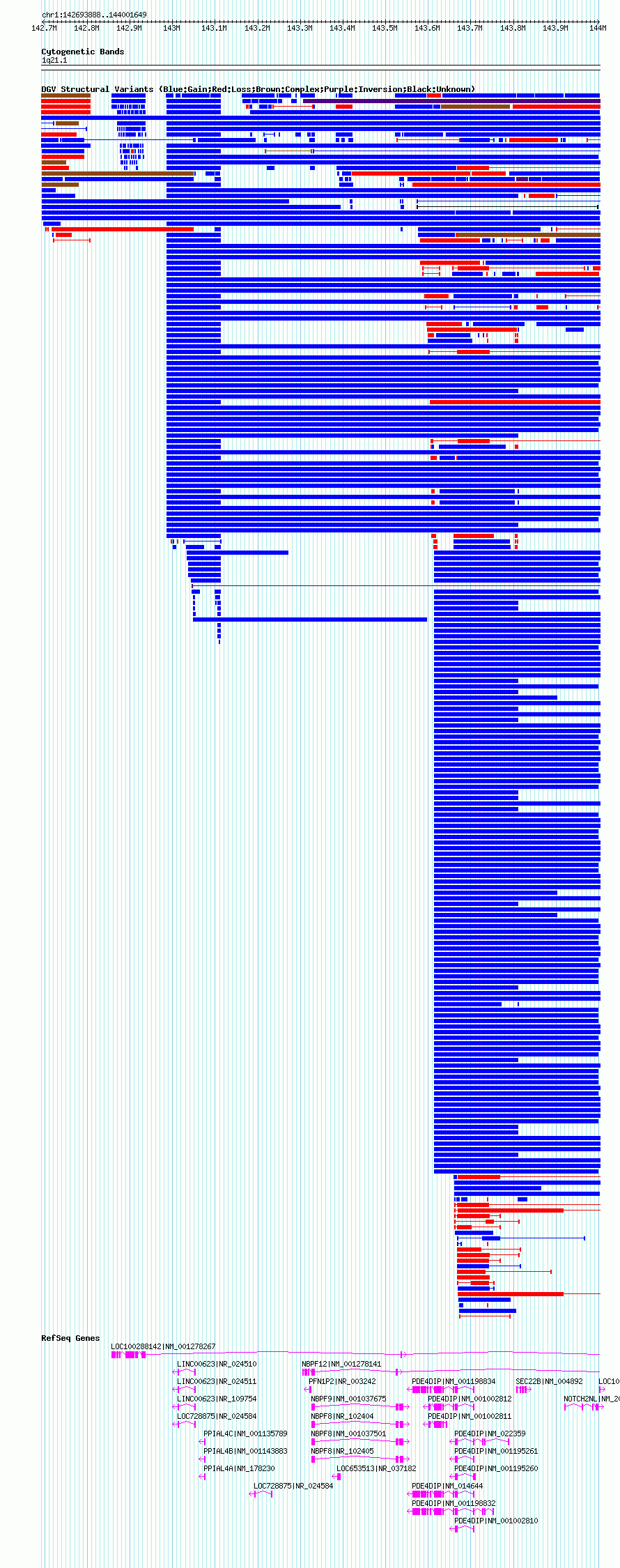| | Variant Type | CNV gain | | Copy Number | | | Allele State | | | Allele Origin | | | Probe Count | | | Validation Flag | | | Merged Status | M | | Merged Variants | | | Supporting Variants | nsv1012742, nsv1003784 | | Samples | | | Known Genes | LINC00623, LOC100288142, LOC101929780, LOC653513, LOC728875, NBPF12, NBPF8, NBPF9, NOTCH2NL, PDE4DIP, PFN1P2, PPIAL4A, PPIAL4B, PPIAL4C, SEC22B | | Method | SNP array | | Analysis | Affymetrix SNP array copy number analysis | | Platform | Affymetrix SNP Array 6.0 | | Comments | | | Reference | Coe_et_al_2014 | | Pubmed ID | 25217958 | | Accession Number(s) | dgv316n100