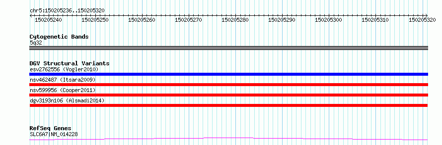 | | Variant Type | CNV deletion | | Copy Number | | | Allele State | | | Allele Origin | | | Probe Count | | | Validation Flag | | | Merged Status | M | | Merged Variants | | | Supporting Variants | nsv1109736, nsv1123994 | | Samples | KWS2, KWS1 | | Known Genes | SLC6A7 | | Method | Sequencing | | Analysis | HugeSeq | | Platform | Illumina HiSeq 2000 | | Comments | | | Reference | Alsmadi_et_al_2014 | | Pubmed ID | 24896259 | | Accession Number(s) | dgv3193n106