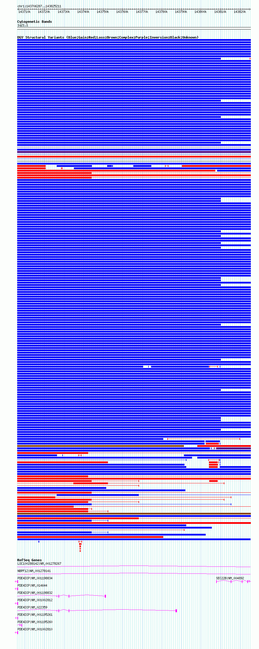 Variant DetailsVariant: dgv326n100| Internal ID | 22786413 | | Landmark | | | Location Information | | | Cytoband | 1q21.1 | | Allele length | | Assembly | Allele length | | hg38 | 114881 | | hg19 | 118925 | | hg18 | 118925 |