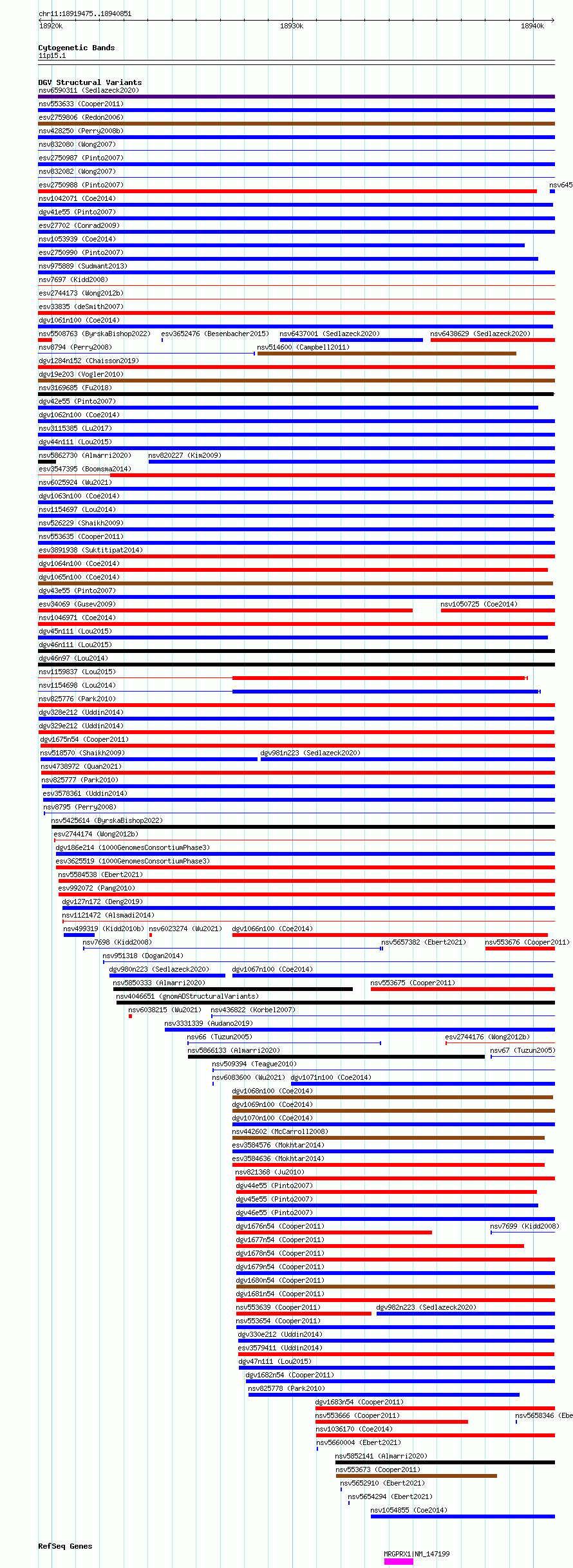 Variant DetailsVariant: dgv328e212 | Internal ID | 22783255 | | Landmark | | | Location Information | | | Cytoband | 11p15.1 | | Allele length | | Assembly | Allele length | | hg38 | 21377 | | hg19 | 21377 |