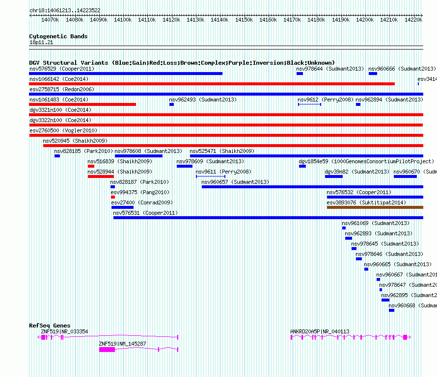Variant DetailsVariant: dgv3322n100| Internal ID | 22789409 | | Landmark | | | Location Information | | | Cytoband | 18p11.21 | | Allele length | | Assembly | Allele length | | hg38 | 162310 | | hg19 | 162310 | | hg18 | 162310 |