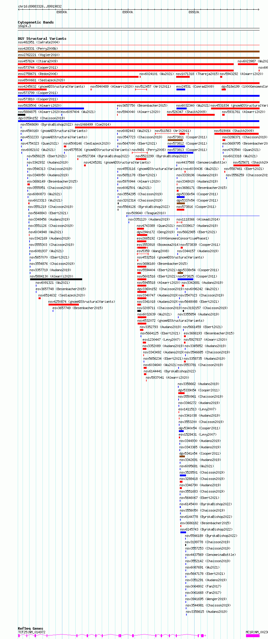 Variant DetailsVariant: dgv3359n152| Internal ID | 22819062 | | Landmark | | | Location Information | | | Cytoband | 16q24.3 | | Allele length | | Assembly | Allele length | | hg38 | 36507 | | hg19 | 36507 |