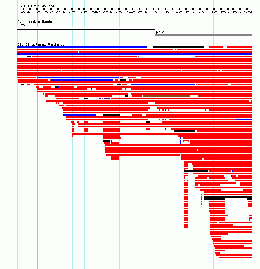 Variant DetailsVariant: dgv336n206| Internal ID | 22755640 | | Landmark | | | Location Information | | | Cytoband | 3p26.1 | | Allele length | | Assembly | Allele length | | hg38 | 199208 | | hg19 | 199208 |