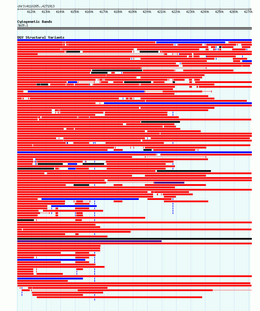 Variant DetailsVariant: dgv339n206| Internal ID | 22755643 | | Landmark | | | Location Information | | | Cytoband | 3p26.1 | | Allele length | | Assembly | Allele length | | hg38 | 161649 | | hg19 | 161649 |