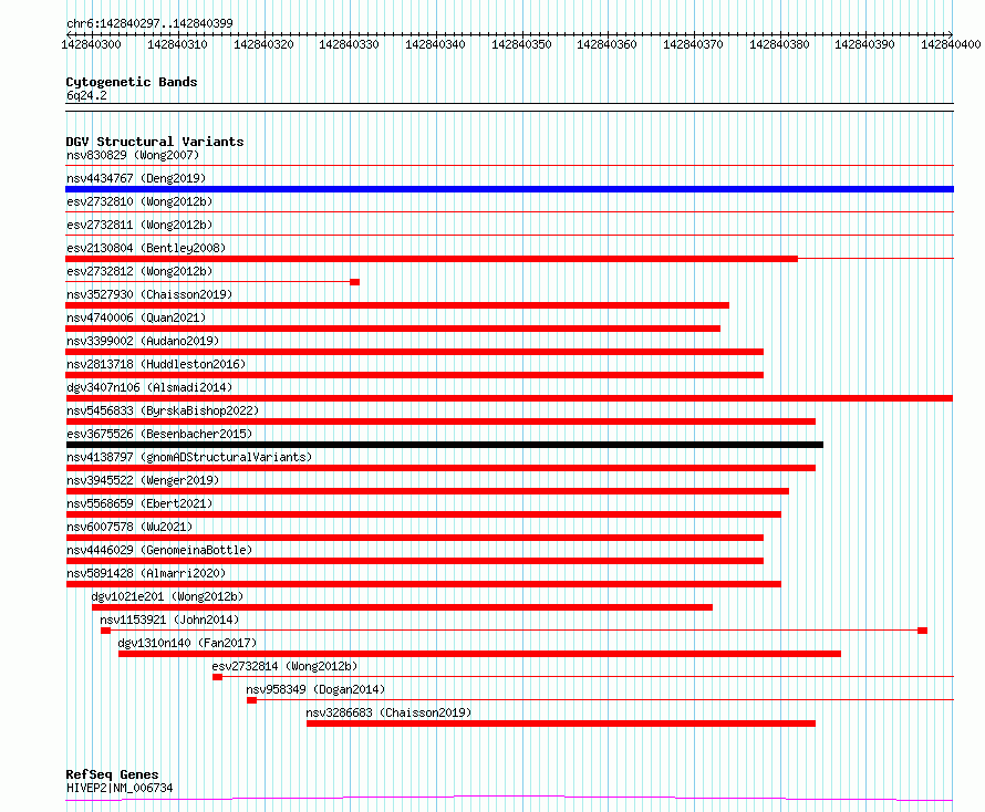 Variant DetailsVariant: dgv3407n106| Internal ID | 22797235 | | Landmark | | | Location Information | | | Cytoband | 6q24.2 | | Allele length | | Assembly | Allele length | | hg38 | 103 | | hg19 | 103 |