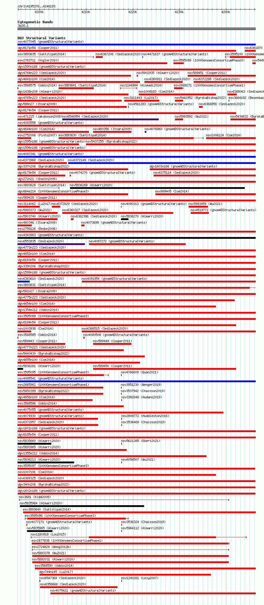 Variant DetailsVariant: dgv340n206| Internal ID | 22755644 | | Landmark | | | Location Information | | | Cytoband | 3p26.1 | | Allele length | | Assembly | Allele length | | hg38 | 50818 | | hg19 | 50818 |