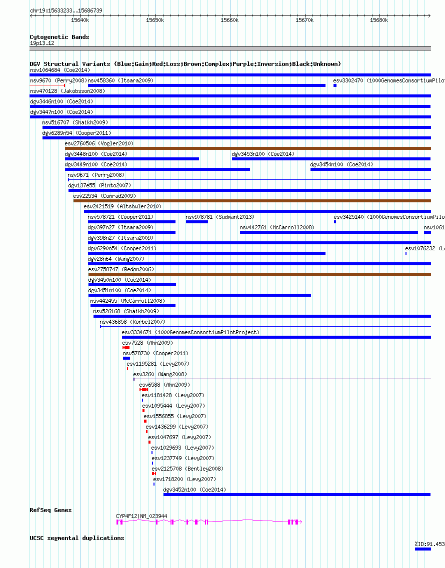 Variant DetailsVariant: dgv3446n100| Internal ID | 20155062 | | Landmark | | | Location Information | | | Cytoband | 19p13.12 | | Allele length | | Assembly | Allele length | | hg38 | 53507 | | hg19 | 53507 | | hg18 | 53507 |