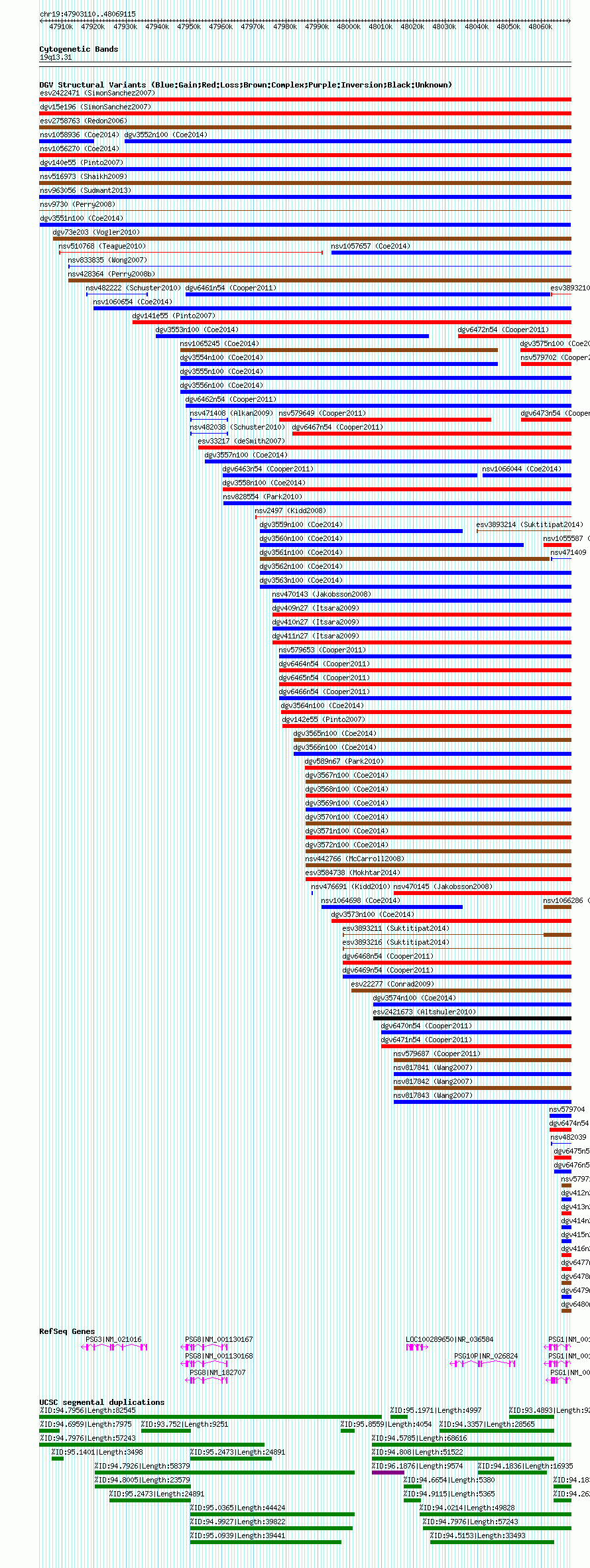 | | Variant Type | CNV gain | | Copy Number | | | Allele State | | | Allele Origin | | | Probe Count | | | Validation Flag | | | Merged Status | M | | Merged Variants | | | Supporting Variants | nsv1062196, nsv1065465, nsv1063724, nsv1063131, nsv1055408, nsv1056871, nsv1060190, nsv1055726, nsv1064332, nsv1066275, nsv1058244, nsv1057113, nsv1063192, nsv1055747, nsv1059355, nsv1064731, nsv1064932, nsv1064141, nsv1063832 | | Samples | | | Known Genes | LOC100289650, PSG1, PSG10P, PSG3, PSG8 | | Method | SNP array | | Analysis | Affymetrix SNP array copy number analysis | | Platform | Affymetrix SNP Array 6.0 | | Comments | | | Reference | Coe_et_al_2014 | | Pubmed ID | 25217958 | | Accession Number(s) | dgv3551n100
