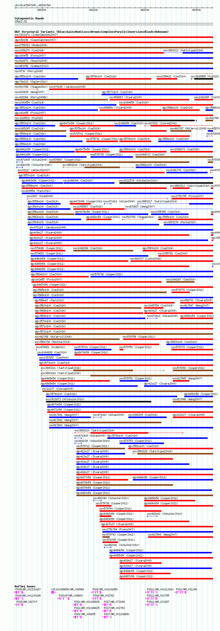 | | Variant Type | CNV gain | | Copy Number | | | Allele State | | | Allele Origin | | | Probe Count | | | Validation Flag | | | Merged Status | M | | Merged Variants | | | Supporting Variants | nsv1066158, nsv1057586, nsv1056360, nsv1064690, nsv1065531, nsv1056760, nsv1066433, nsv1062552, nsv1058160, nsv1056761, nsv1057739, nsv1066290, nsv1064551, nsv1063043, nsv1055494, nsv1055809, nsv1067219, nsv1065141, nsv1062710, nsv1055516, nsv1062323 | | Samples | | | Known Genes | LOC100289650, PSG1, PSG10P, PSG11, PSG2, PSG6, PSG7, PSG8 | | Method | SNP array | | Analysis | Affymetrix SNP array copy number analysis | | Platform | Affymetrix SNP Array 6.0 | | Comments | | | Reference | Coe_et_al_2014 | | Pubmed ID | 25217958 | | Accession Number(s) | dgv3556n100