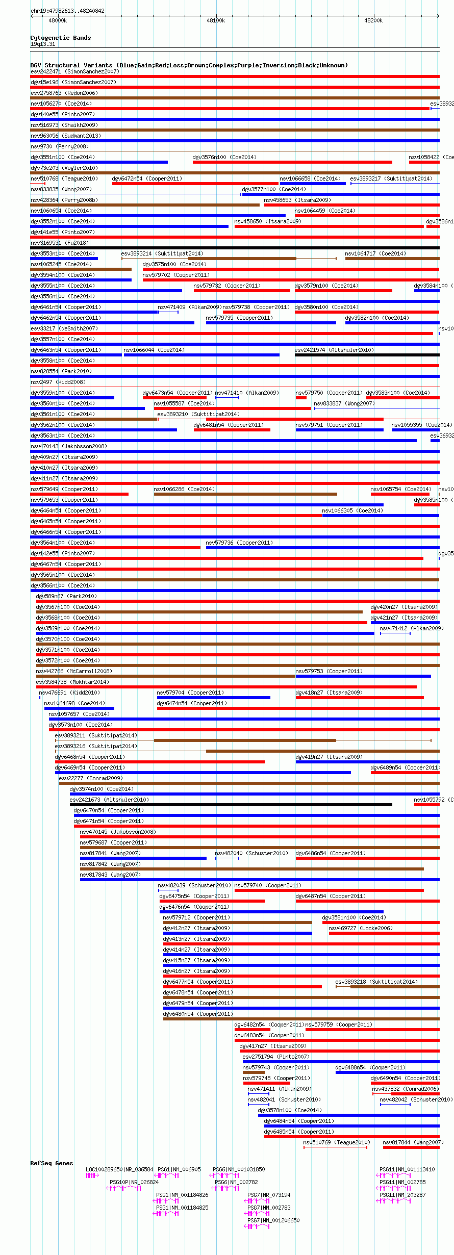 | | Variant Type | CNV gain+loss | | Copy Number | | | Allele State | | | Allele Origin | | | Probe Count | | | Validation Flag | | | Merged Status | M | | Merged Variants | | | Supporting Variants | nsv1057814, nsv1064000, nsv1058047, nsv1055834, nsv1061984, nsv1063315, nsv1061783, nsv1066261, nsv1059036 | | Samples | | | Known Genes | LOC100289650, PSG1, PSG10P, PSG11, PSG6, PSG7 | | Method | SNP array | | Analysis | Affymetrix SNP array copy number analysis | | Platform | Affymetrix SNP Array 6.0 | | Comments | | | Reference | Coe_et_al_2014 | | Pubmed ID | 25217958 | | Accession Number(s) | dgv3565n100