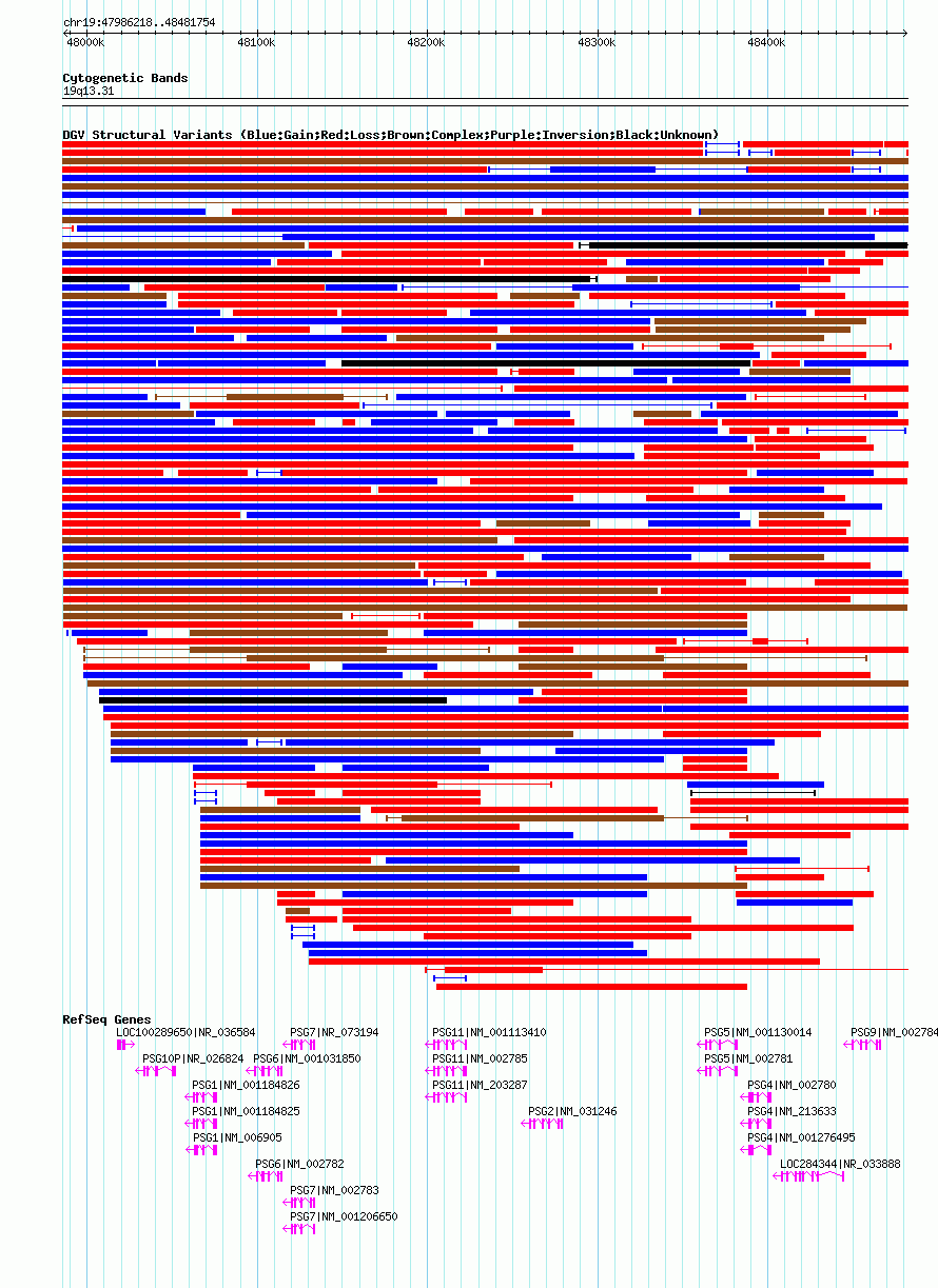 | | Variant Type | CNV gain+loss | | Copy Number | | | Allele State | | | Allele Origin | | | Probe Count | | | Validation Flag | | | Merged Status | M | | Merged Variants | | | Supporting Variants | nsv1062897, nsv1063939, nsv1061027, nsv1066512, nsv1063294, nsv1059888 | | Samples | | | Known Genes | LOC100289650, LOC284344, PSG1, PSG10P, PSG11, PSG2, PSG4, PSG5, PSG6, PSG7, PSG9 | | Method | SNP array | | Analysis | Affymetrix SNP array copy number analysis | | Platform | Affymetrix SNP Array 6.0 | | Comments | | | Reference | Coe_et_al_2014 | | Pubmed ID | 25217958 | | Accession Number(s) | dgv3572n100