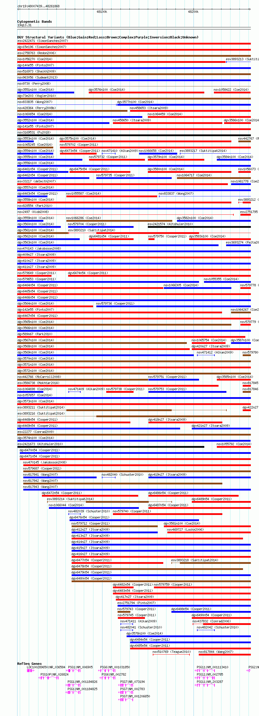 | | Variant Type | CNV gain | | Copy Number | | | Allele State | | | Allele Origin | | | Probe Count | | | Validation Flag | | | Merged Status | M | | Merged Variants | | | Supporting Variants | nsv1059288, nsv1065857, nsv1064203, nsv1057231, nsv1058401, nsv1062084 | | Samples | | | Known Genes | LOC100289650, PSG1, PSG10P, PSG11, PSG2, PSG6, PSG7 | | Method | SNP array | | Analysis | Affymetrix SNP array copy number analysis | | Platform | Affymetrix SNP Array 6.0 | | Comments | | | Reference | Coe_et_al_2014 | | Pubmed ID | 25217958 | | Accession Number(s) | dgv3574n100