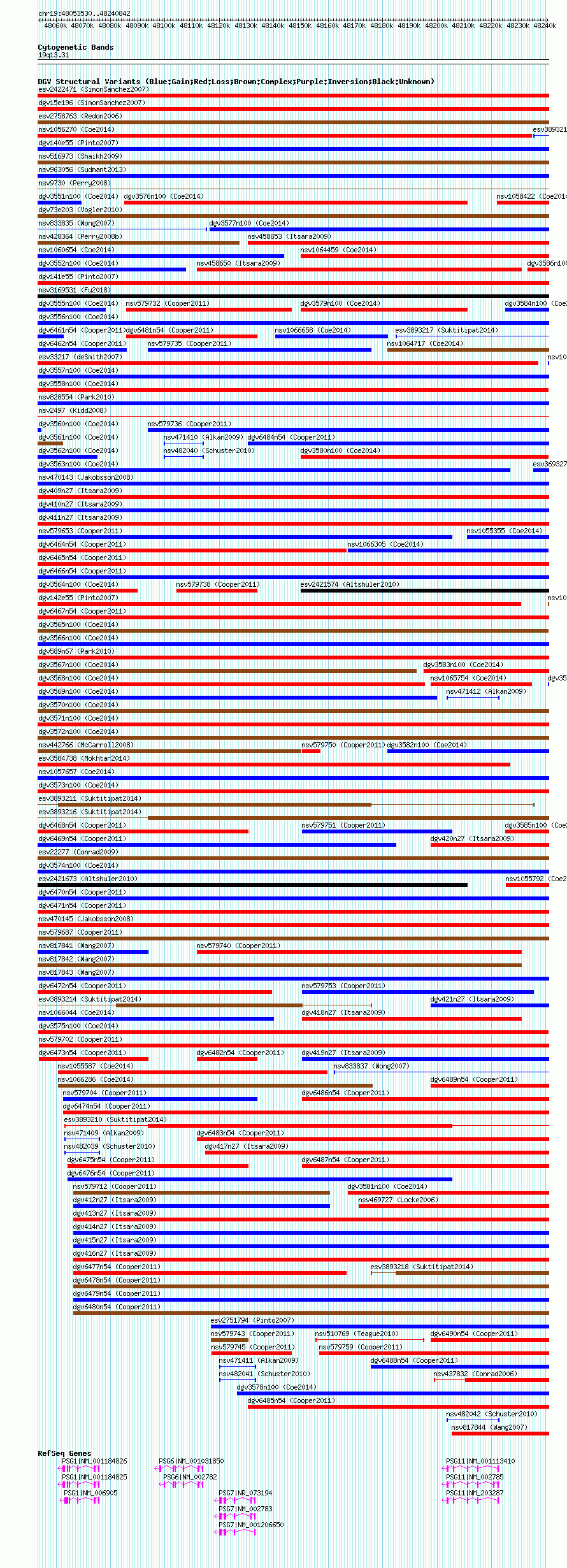 Variant DetailsVariant: dgv3575n100| Internal ID | 22789662 | | Landmark | | | Location Information | | | Cytoband | 19q13.2 | | Allele length | | Assembly | Allele length | | hg38 | 187313 | | hg19 | 187313 | | hg18 | 187313 |