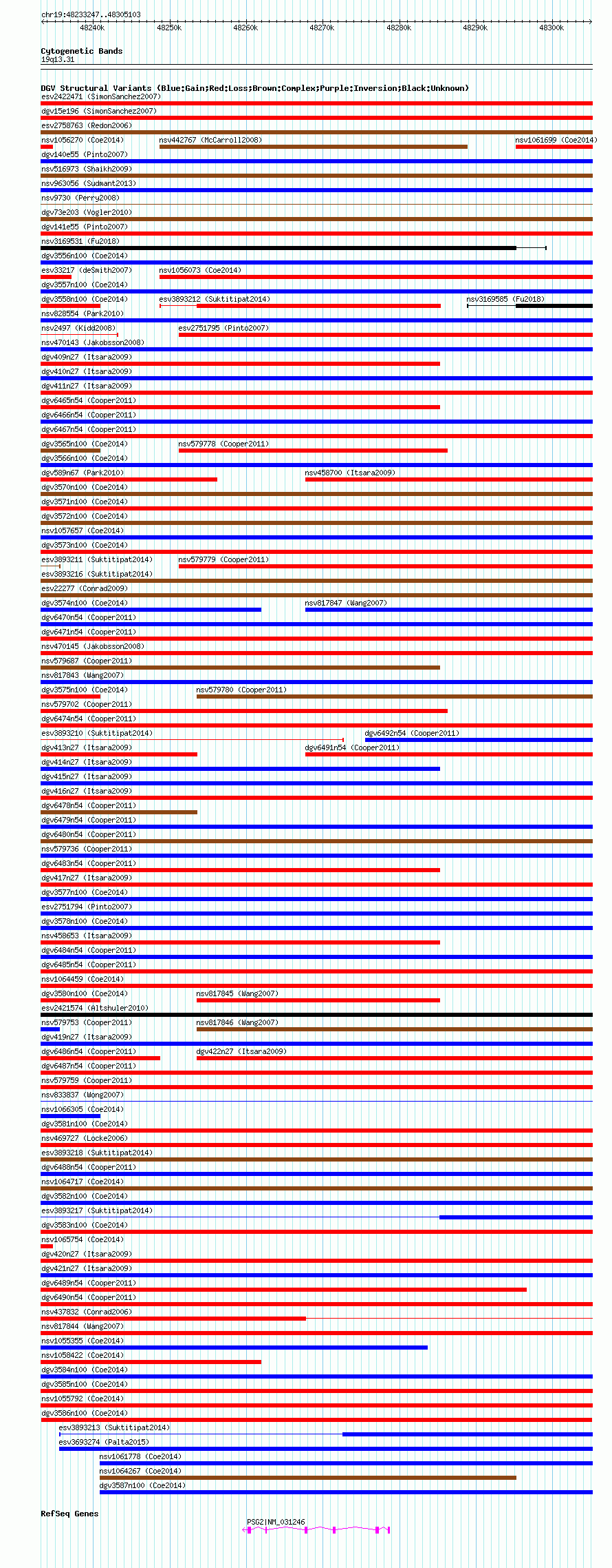 Variant DetailsVariant: dgv3586n100| Internal ID | 22789673 | | Landmark | | | Location Information | | | Cytoband | 19q13.31 | | Allele length | | Assembly | Allele length | | hg38 | 71857 | | hg19 | 71857 | | hg18 | 71857 |