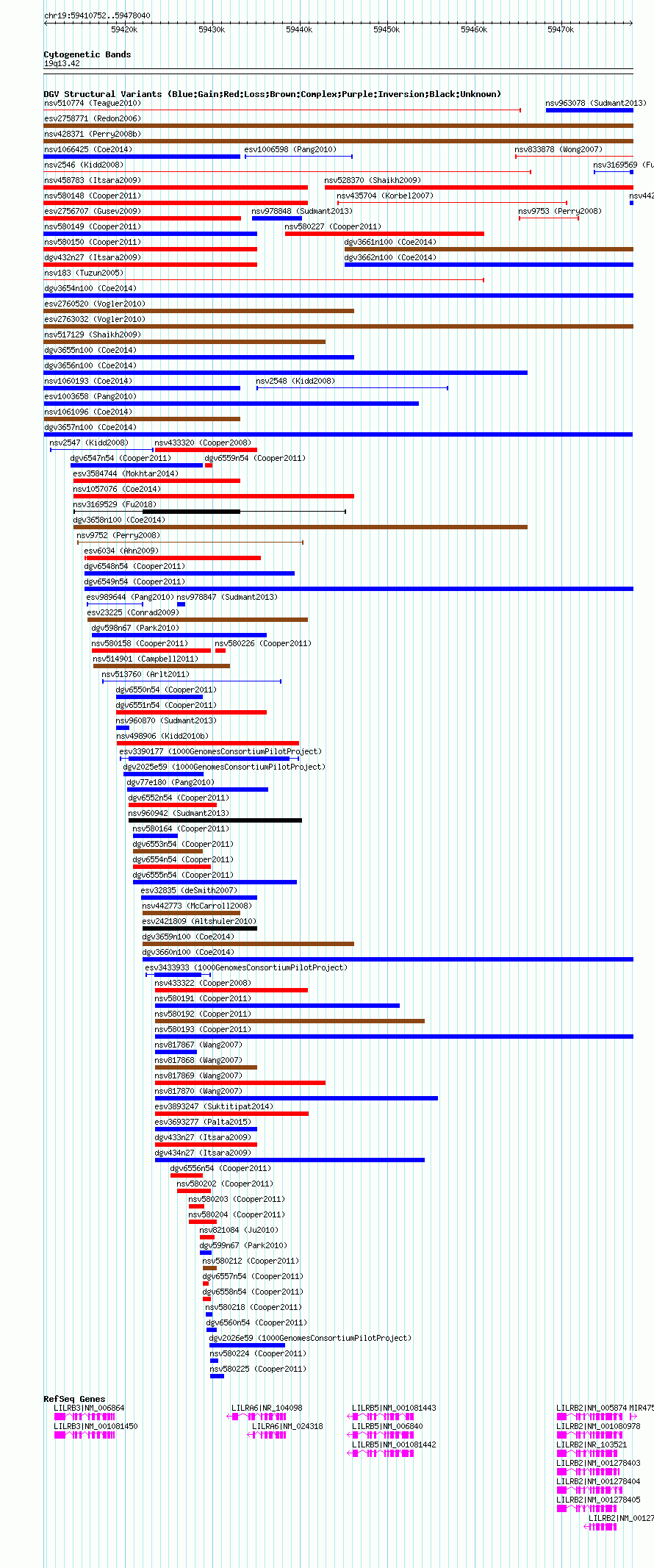 Variant DetailsVariant: dgv3657n100| Internal ID | 22789744 | | Landmark | | | Location Information | | | Cytoband | 19q13.42 | | Allele length | | Assembly | Allele length | | hg38 | 67303 | | hg19 | 67289 | | hg18 | 67289 |