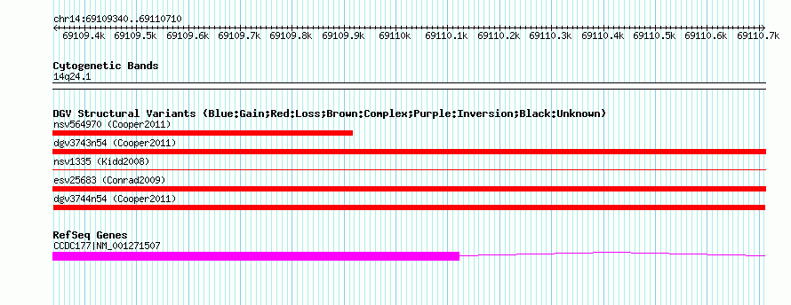 Variant DetailsVariant: dgv3744n54| Internal ID | 20137168 | | Landmark | | | Location Information | | | Cytoband | 14q24.1 | | Allele length | | Assembly | Allele length | | hg38 | 1371 | | hg19 | 1371 | | hg18 | 1371 |