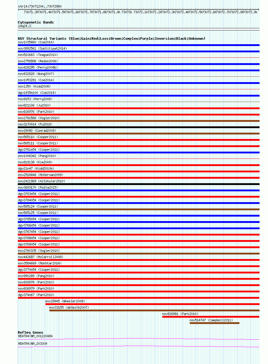 Variant DetailsVariant: dgv374n67 | Internal ID | 22781357 | | Landmark | | | Location Information | | | Cytoband | 14q24.3 | | Allele length | | Assembly | Allele length | | hg38 | 1757 | | hg19 | 1757 | | hg18 | 1757 |