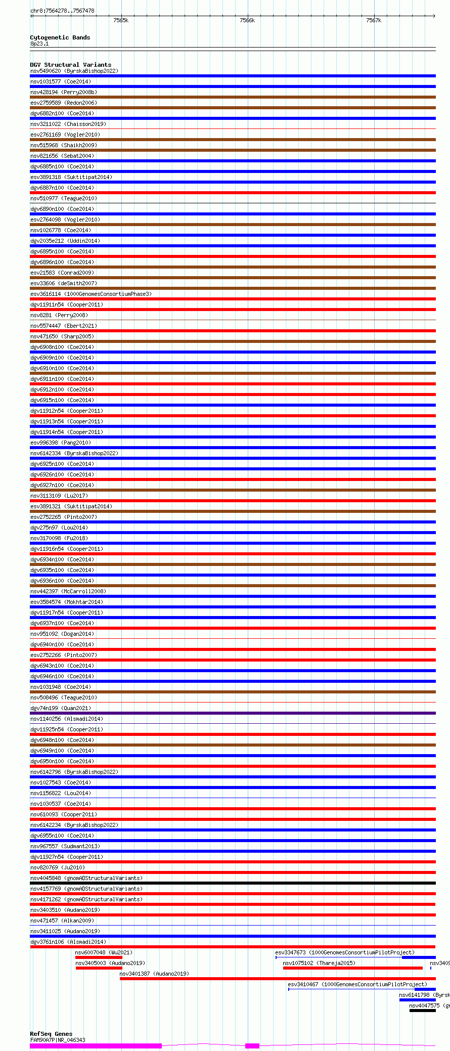 Variant DetailsVariant: dgv3761n106| Internal ID | 22797589 | | Landmark | | | Location Information | | | Cytoband | 8p23.1 | | Allele length | | Assembly | Allele length | | hg38 | 3201 | | hg19 | 3201 |