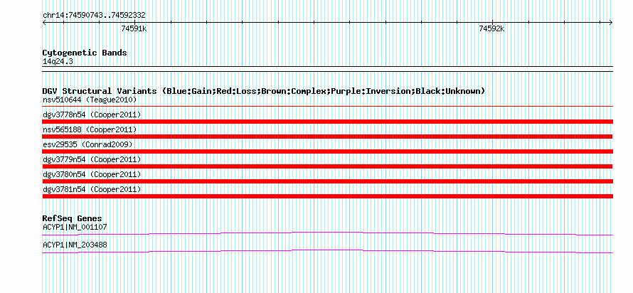| | Variant Type | CNV loss | | Copy Number | | | Allele State | | | Allele Origin | | | Probe Count | | | Validation Flag | | | Merged Status | M | | Merged Variants | | | Supporting Variants | nsv565190, nsv565191 | | Samples | | | Known Genes | ACYP1 | | Method | SNP array | | Analysis | Illumina SNP array copy number analysis | | Platform | Not reported | | Comments | | | Reference | Cooper_et_al_2011 | | Pubmed ID | 21841781 | | Accession Number(s) | dgv3779n54