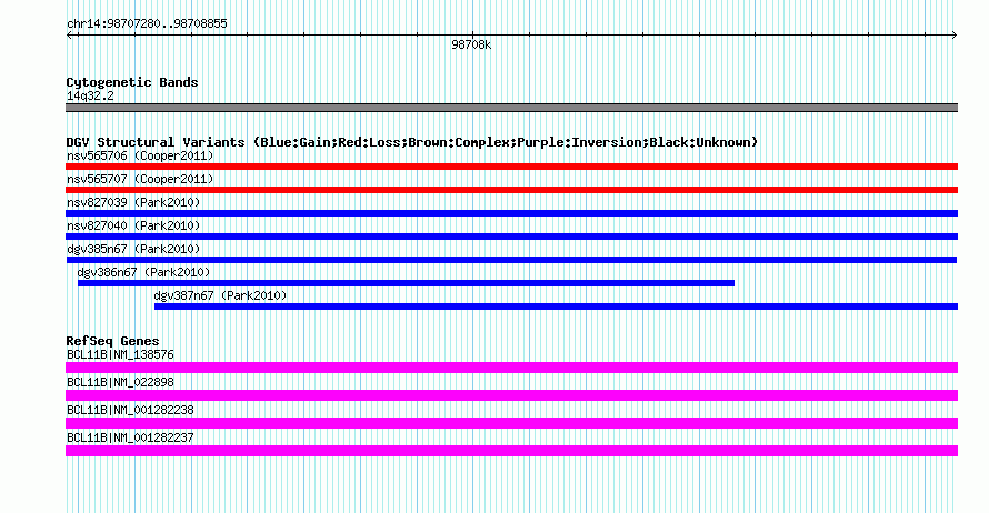 Variant DetailsVariant: dgv385n67 | Internal ID | 22781368 | | Landmark | | | Location Information | | | Cytoband | 14q32.2 | | Allele length | | Assembly | Allele length | | hg38 | 1576 | | hg19 | 1576 | | hg18 | 1576 |