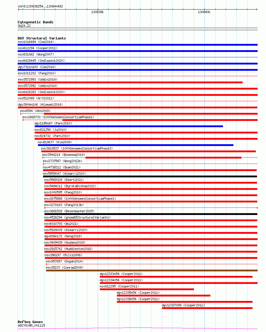 Variant DetailsVariant: dgv3904n106| Internal ID | 22797732 | | Landmark | | | Location Information | | | Cytoband | 8q24.22 | | Allele length | | Assembly | Allele length | | hg38 | 2239 | | hg19 | 2239 |