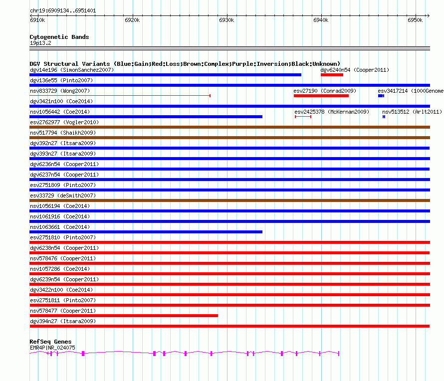 Variant DetailsVariant: dgv394n27| Internal ID | 22767123 | | Landmark | | | Location Information | | | Cytoband | 19p13.2 | | Allele length | | Assembly | Allele length | | hg38 | 42268 | | hg19 | 42268 | | hg18 | 42268 | | hg17 | 42268 |