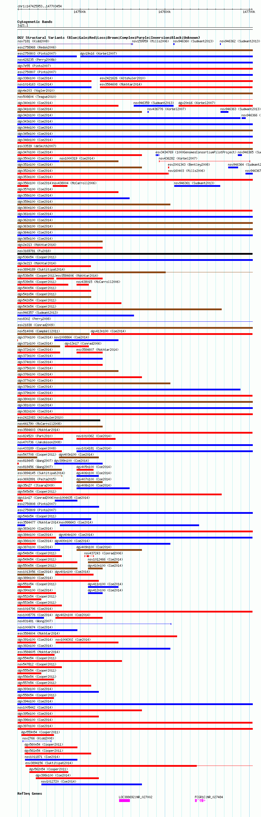 | | Variant Type | CNV loss | | Copy Number | | | Allele State | | | Allele Origin | | | Probe Count | | | Validation Flag | | | Merged Status | M | | Merged Variants | | | Supporting Variants | nsv1002220, nsv999562, nsv997870, nsv999424, nsv1003842, nsv1003132 | | Samples | | | Known Genes | FCGR1C, LOC388692 | | Method | SNP array | | Analysis | Affymetrix SNP array copy number analysis | | Platform | Affymetrix SNP Array 6.0 | | Comments | | | Reference | Coe_et_al_2014 | | Pubmed ID | 25217958 | | Accession Number(s) | dgv396n100