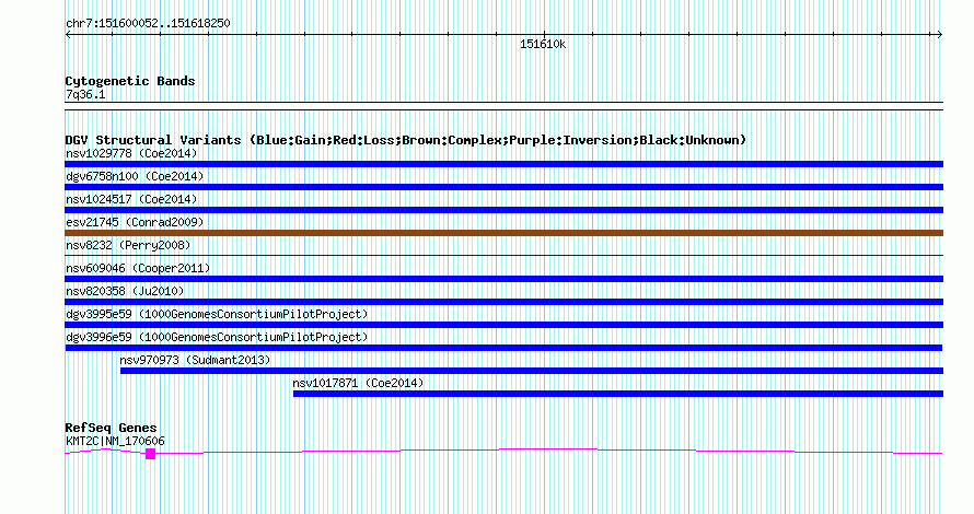 Variant DetailsVariant: dgv3996e59| Internal ID | 22765216 | | Landmark | | | Location Information | | | Cytoband | 7q36.1 | | Allele length | | Assembly | Allele length | | hg38 | 18199 | | hg19 | 18199 | | hg18 | 18199 |