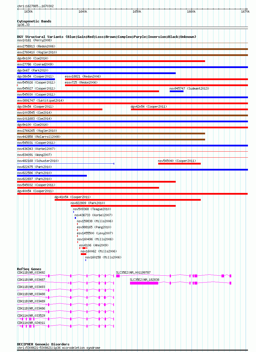Variant DetailsVariant: dgv40n54| Internal ID | 22767935 | | Landmark | | | Location Information | | | Cytoband | 1p36.33 | | Allele length | | Assembly | Allele length | | hg38 | 42438 | | hg19 | 42438 | | hg18 | 42438 |
