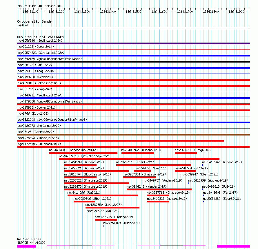 Variant DetailsVariant: dgv4172n106| Internal ID | 22798000 | | Landmark | | | Location Information | | | Cytoband | 9q34.3 | | Allele length | | Assembly | Allele length | | hg38 | 901 | | hg19 | 901 |