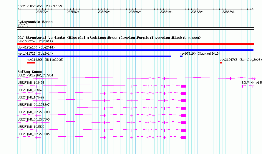 | | Variant Type | CNV gain | | Copy Number | | | Allele State | | | Allele Origin | | | Probe Count | | | Validation Flag | | | Merged Status | M | | Merged Variants | | | Supporting Variants | nsv1012277, nsv1003800 | | Samples | | | Known Genes | SCLY, UBE2F, UBE2F-SCLY | | Method | SNP array | | Analysis | Affymetrix SNP array copy number analysis | | Platform | Affymetrix SNP Array 6.0 | | Comments | | | Reference | Coe_et_al_2014 | | Pubmed ID | 25217958 | | Accession Number(s) | dgv4193n100
