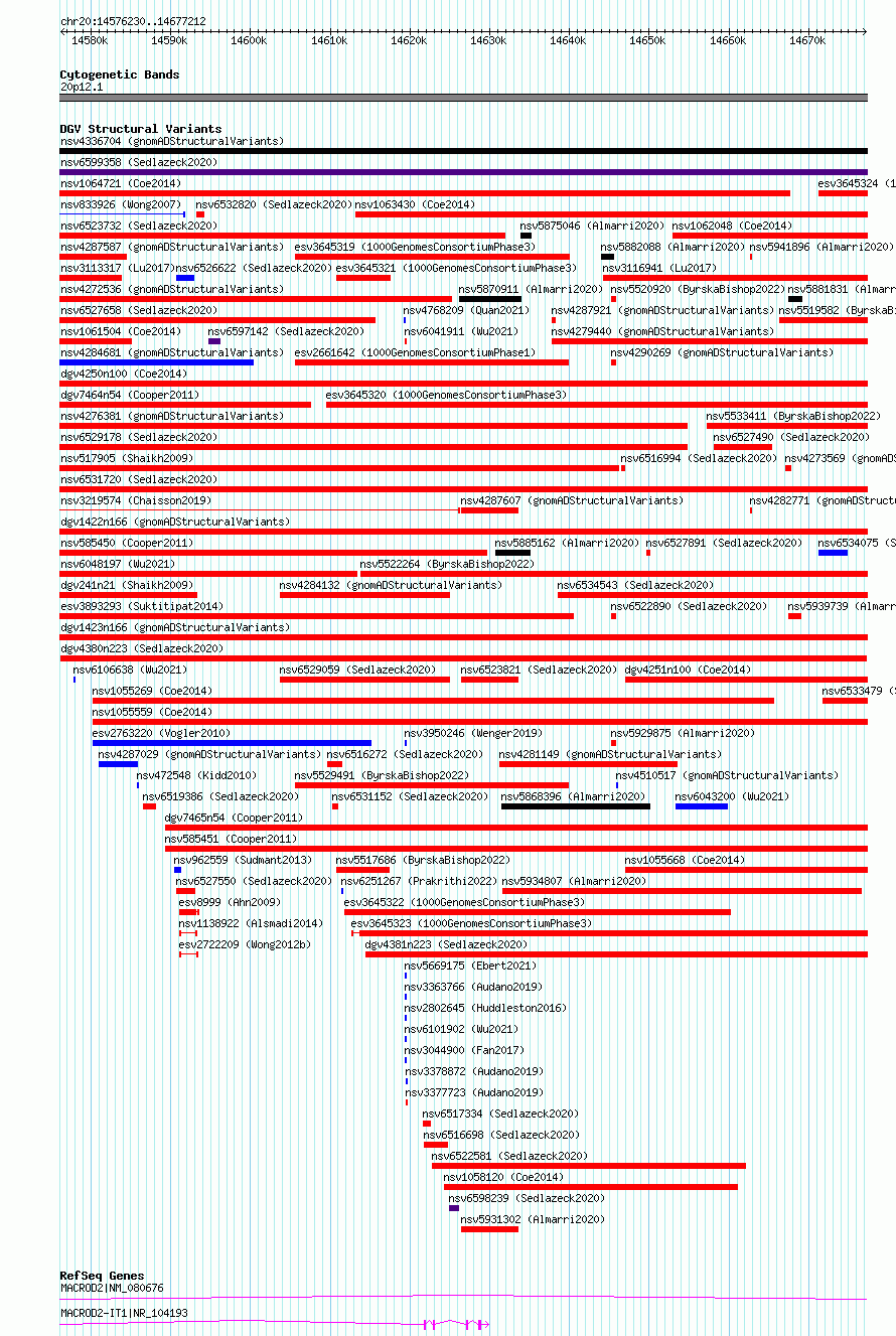 Variant DetailsVariant: dgv4380n223| Internal ID | 22807348 | | Landmark | | | Location Information | | | Cytoband | 20p12.1 | | Allele length | | Assembly | Allele length | | hg38 | 100983 | | hg19 | 100983 |