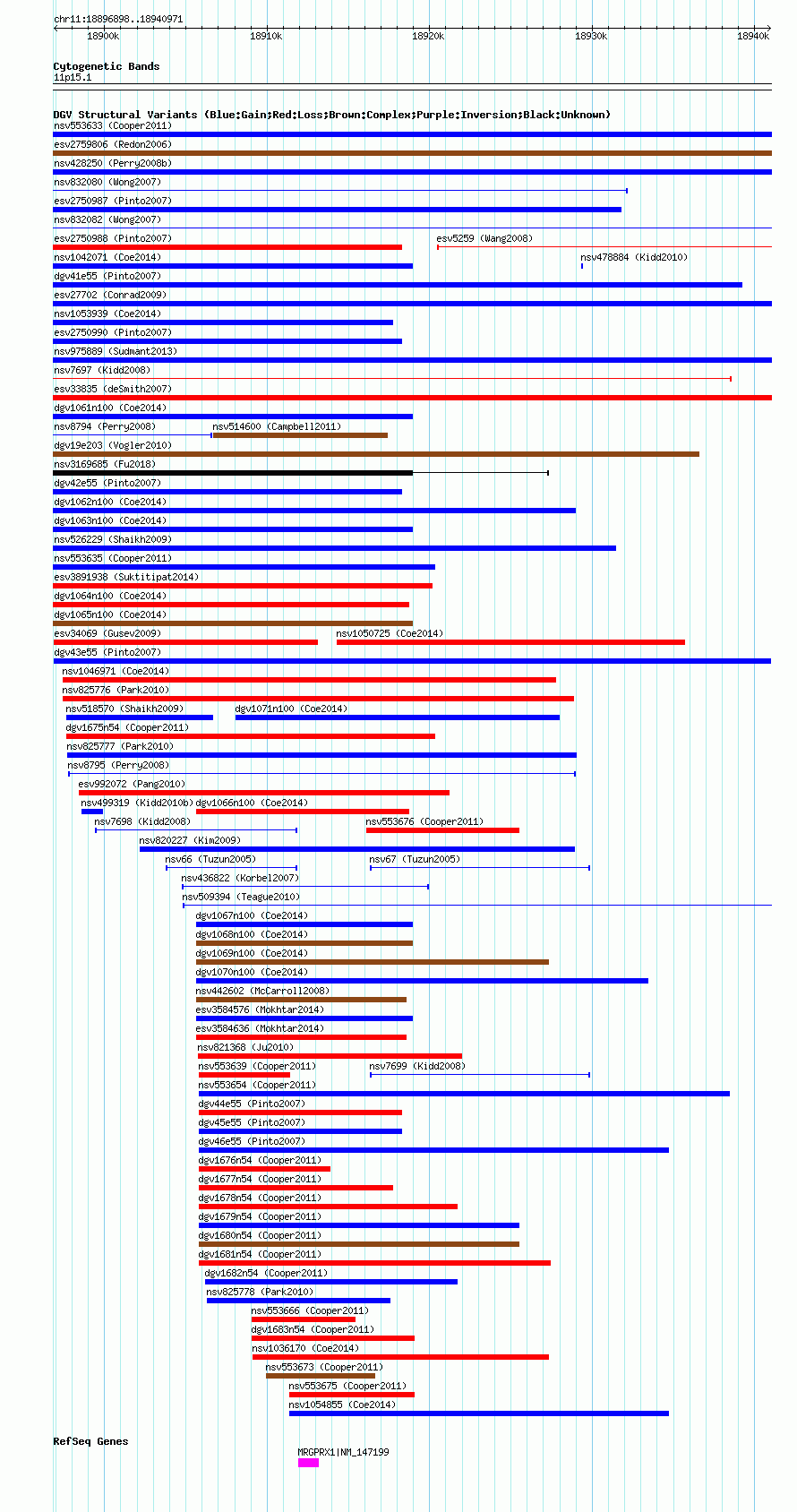 Variant DetailsVariant: dgv43e55| Internal ID | 22760993 | | Landmark | | | Location Information | | | Cytoband | 11p15.1 | | Allele length | | Assembly | Allele length | | hg38 | 44074 | | hg19 | 44074 | | hg18 | 44074 | | hg17 | 44074 |