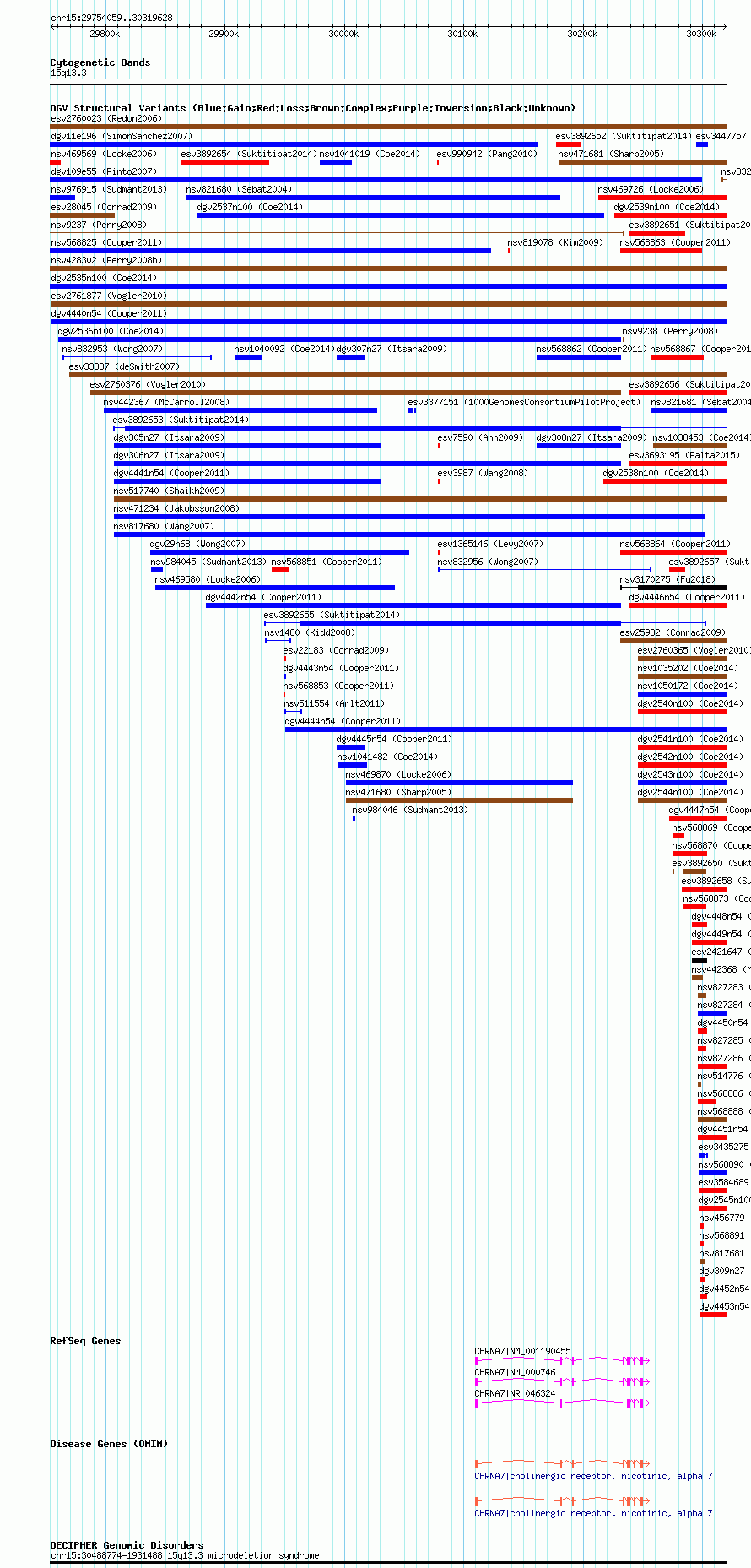 Variant DetailsVariant: dgv4440n54| Internal ID | 22772335 | | Landmark | | | Location Information | | | Cytoband | 15q13.3 | | Allele length | | Assembly | Allele length | | hg38 | 565572 | | hg19 | 565570 | | hg18 | 565570 |