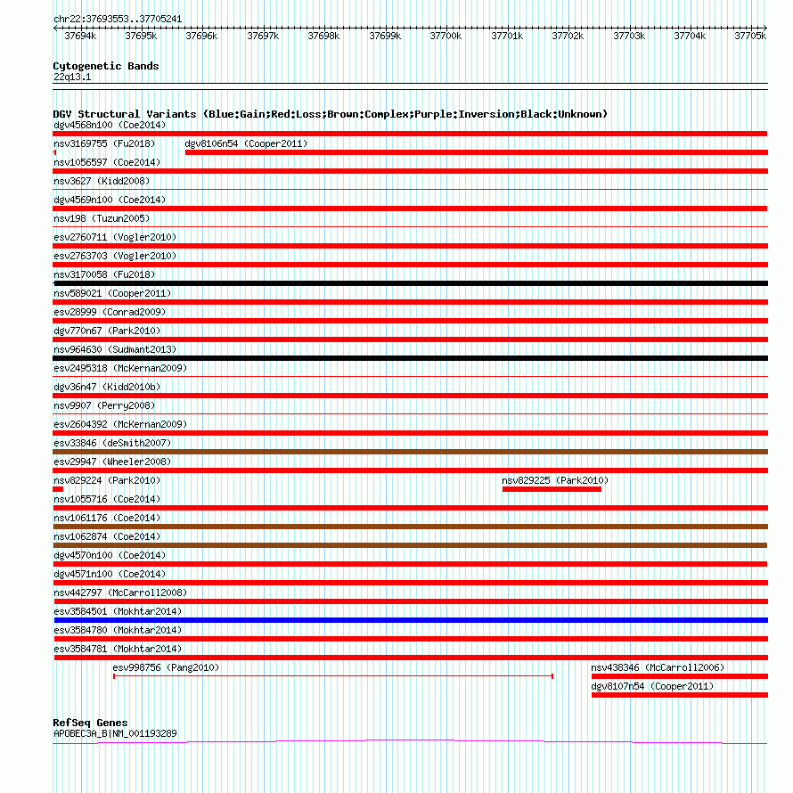 Variant DetailsVariant: dgv4570n100| Internal ID | 22790657 | | Landmark | | | Location Information | | | Cytoband | 22q13.1 | | Allele length | | Assembly | Allele length | | hg38 | 11689 | | hg19 | 11689 | | hg18 | 11689 |