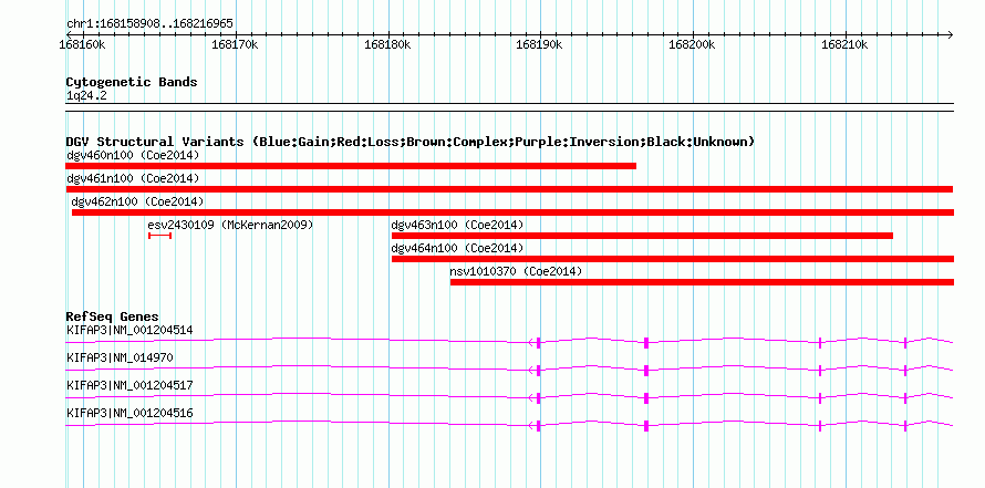 Variant DetailsVariant: dgv461n100| Internal ID | 22786548 | | Landmark | | | Location Information | | | Cytoband | 1q24.2 | | Allele length | | Assembly | Allele length | | hg38 | 58058 | | hg19 | 58058 | | hg18 | 58058 |