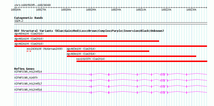 Variant DetailsVariant: dgv462n100| Internal ID | 22786549 | | Landmark | | | Location Information | | | Cytoband | 1q24.2 | | Allele length | | Assembly | Allele length | | hg38 | 76784 | | hg19 | 76784 | | hg18 | 76784 |