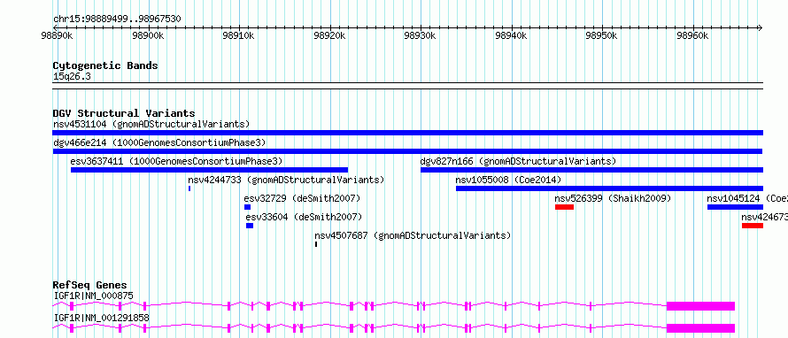 Variant DetailsVariant: dgv466e214| Internal ID | 20121889 | | Landmark | | | Location Information | | | Cytoband | 15q26.3 | | Allele length | | Assembly | Allele length | | hg38 | 78032 | | hg19 | 78032 |
