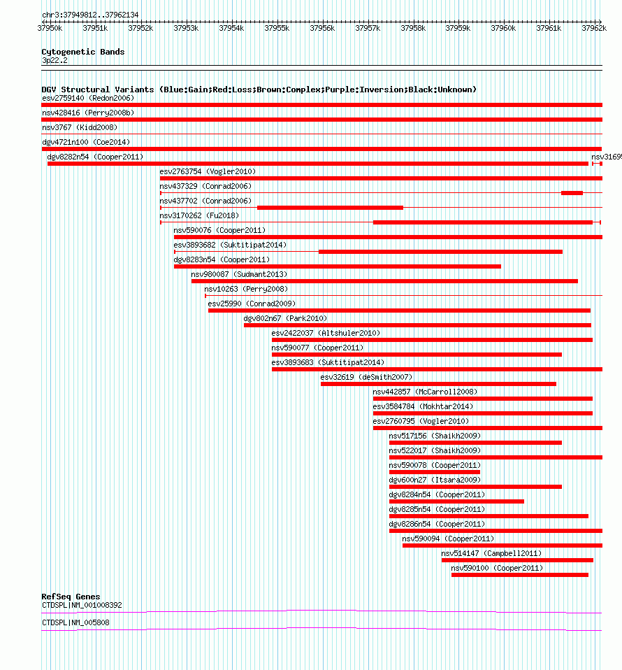 Variant DetailsVariant: dgv4721n100| Internal ID | 22790808 | | Landmark | | | Location Information | | | Cytoband | 3p22.2 | | Allele length | | Assembly | Allele length | | hg38 | 12323 | | hg19 | 12323 | | hg18 | 12323 |