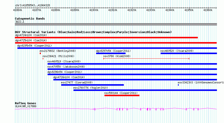 Variant DetailsVariant: dgv4725n100| Internal ID | 22790812 | | Landmark | | | Location Information | | | Cytoband | 3p22.1 | | Allele length | | Assembly | Allele length | | hg38 | 105786 | | hg19 | 105786 | | hg18 | 105786 |