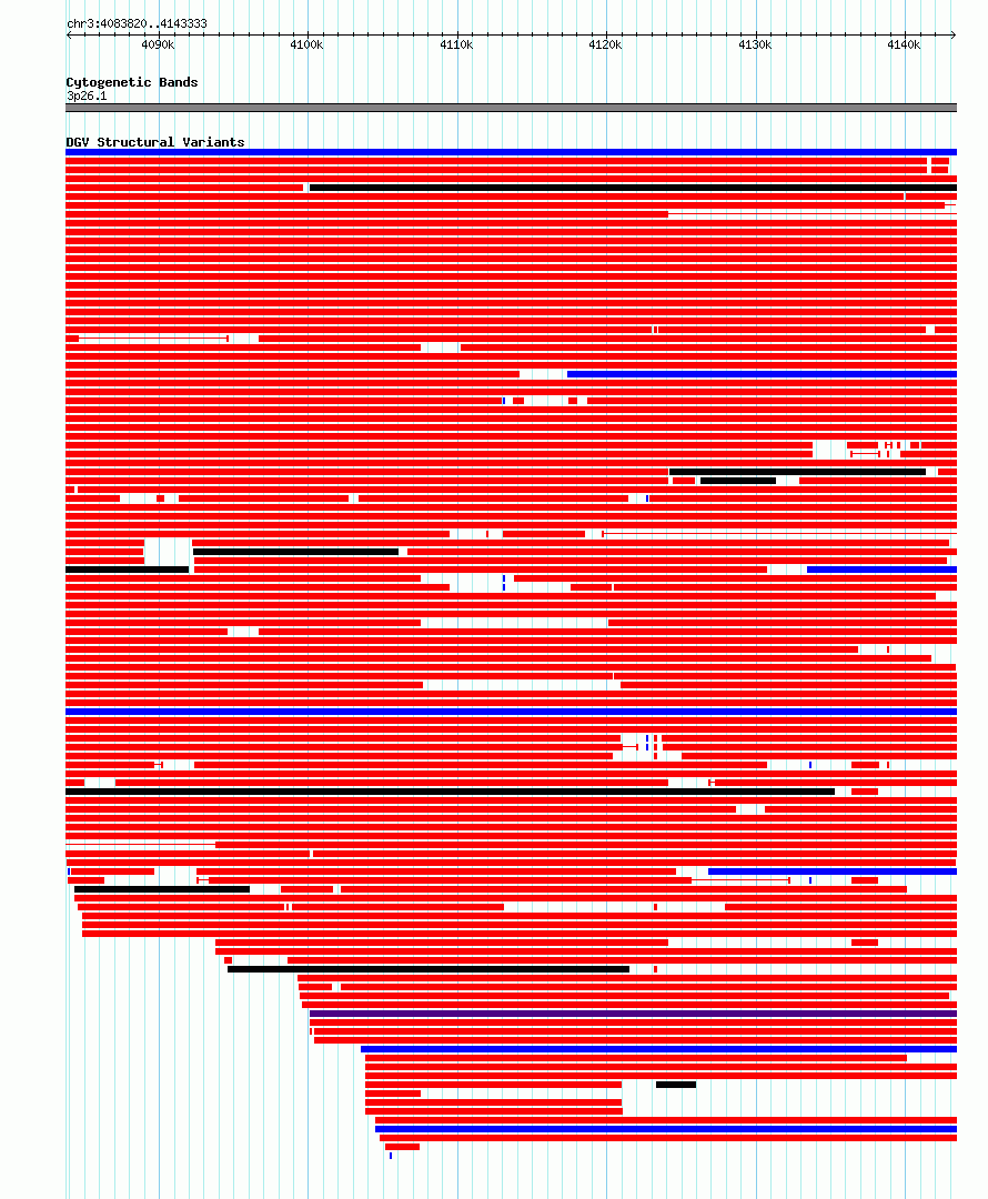 Variant DetailsVariant: dgv4769n223| Internal ID | 22807737 | | Landmark | | | Location Information | | | Cytoband | 3p26.1 | | Allele length | | Assembly | Allele length | | hg38 | 59514 | | hg19 | 59514 |