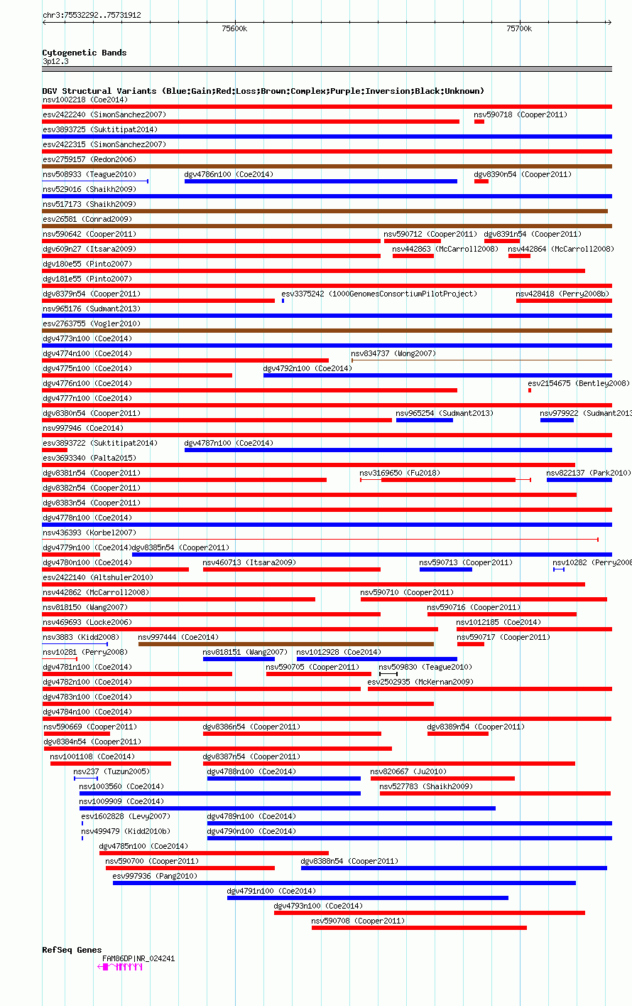 Variant DetailsVariant: dgv4784n100| Internal ID | 22790871 | | Landmark | | | Location Information | | | Cytoband | 3p12.3 | | Allele length | | Assembly | Allele length | | hg38 | 199621 | | hg19 | 199621 | | hg18 | 199621 |