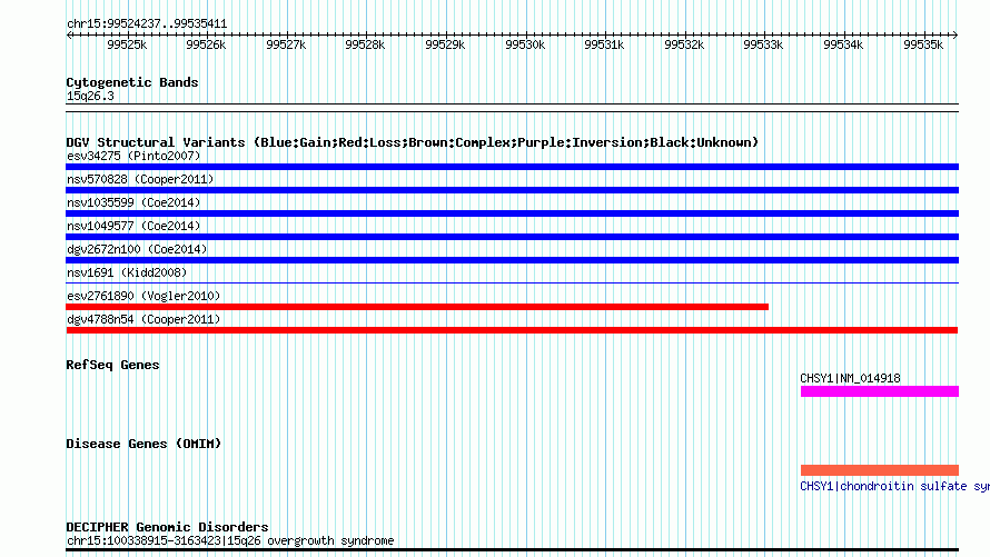 | | Variant Type | CNV loss | | Copy Number | | | Allele State | | | Allele Origin | | | Probe Count | | | Validation Flag | | | Merged Status | M | | Merged Variants | | | Supporting Variants | nsv570831, nsv570832 | | Samples | | | Known Genes | CHSY1 | | Method | SNP array | | Analysis | Illumina SNP array copy number analysis | | Platform | Not reported | | Comments | | | Reference | Cooper_et_al_2011 | | Pubmed ID | 21841781 | | Accession Number(s) | dgv4788n54