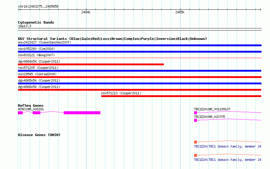 Variant DetailsVariant: dgv4866n54| Internal ID | 22772761 | | Landmark | | | Location Information | | | Cytoband | 16p13.3 | | Allele length | | Assembly | Allele length | | hg38 | 2584 | | hg19 | 2584 | | hg18 | 2584 |