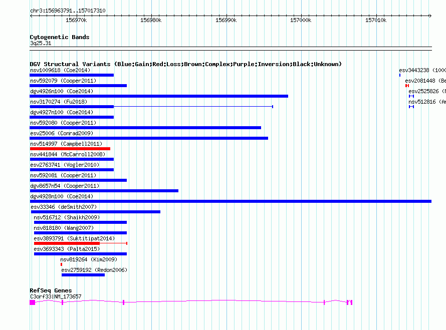 Variant DetailsVariant: dgv4928n100| Internal ID | 22791015 | | Landmark | | | Location Information | | | Cytoband | 3q25.31 | | Allele length | | Assembly | Allele length | | hg38 | 53520 | | hg19 | 53520 | | hg18 | 53520 |