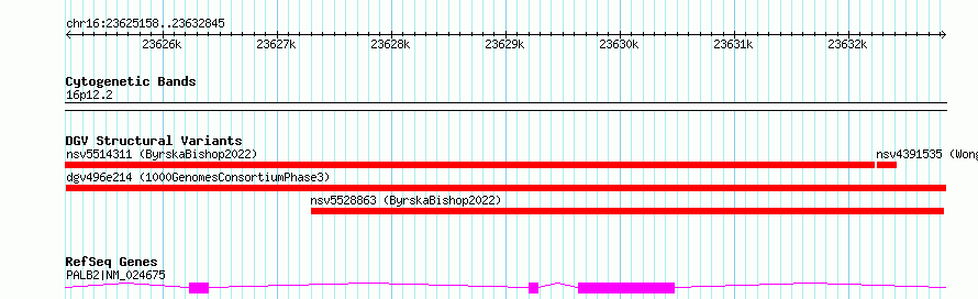 Variant DetailsVariant: dgv496e214| Internal ID | 22756390 | | Landmark | | | Location Information | | | Cytoband | 16p12.2 | | Allele length | | Assembly | Allele length | | hg38 | 7688 | | hg19 | 7688 |