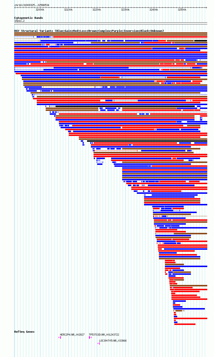 Variant DetailsVariant: dgv4991n54| Internal ID | 22772886 | | Landmark | | | Location Information | | | Cytoband | 16p11.2 | | Allele length | | Assembly | Allele length | | hg38 | 677210 | | hg19 | 677210 | | hg18 | 677210 |