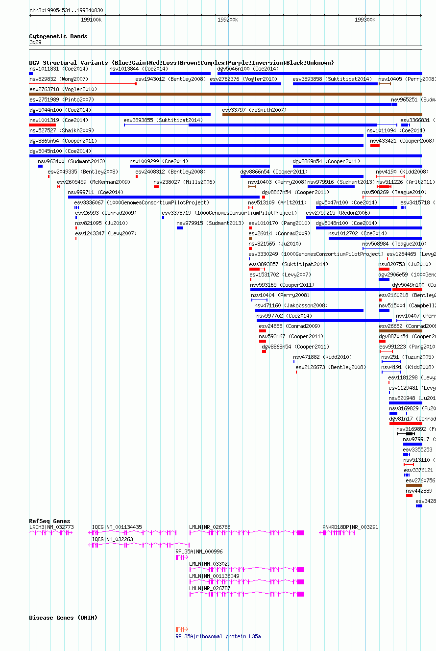 Variant DetailsVariant: dgv5045n100| Internal ID | 22791132 | | Landmark | | | Location Information | | | Cytoband | 3q29 | | Allele length | | Assembly | Allele length | | hg38 | 286300 | | hg19 | 286300 | | hg18 | 286300 |