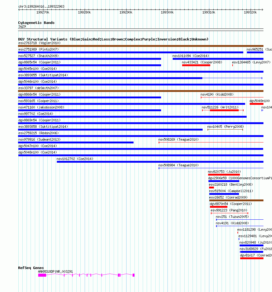 Variant DetailsVariant: dgv5047n100| Internal ID | 22791134 | | Landmark | | | Location Information | | | Cytoband | 3q29 | | Allele length | | Assembly | Allele length | | hg38 | 58948 | | hg19 | 58948 | | hg18 | 58948 |